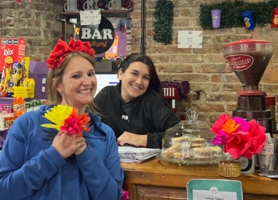 El bar también invita a quedarse: contamos con una biblioteca y juegos de mesa, porque creemos que la cultura también se vive en esos pequeños momentos de lectura, charla y juego.